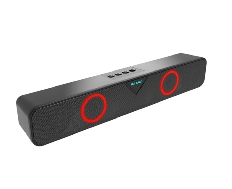 콤팩트한 빛나는 사운드바, 2인치 풀 레인지 드라이버 (5W×2 RMS) 와 2개의 베이스 환기가 탑재되어 낮은 레인지에 더 좋은 반응을 제공합니다. 주파수 범위:35Hz~16kHz, 선명한 스테레오 영상 촬영을 위한 88dB 이상의 채널 분리이 빛나는 사운드바 내장 1200mAh 재충전 배터리 (DC 5V 입력) 는 무선 재생을 3~5 시간 동안 가능하게 합니다. 이 빛나는 사운드바는 5개의 재생 모드를 지원합니다: 블루투스, USB 플래시 드라이브,TF 카드, AUX-in, FM 라디오. 이 빛나는 사운드바 앞 철망 패널과 로고는 작동 중에 사용자 정의 가능한 RGB 주변 빛을 발합니다.가볍고 세련된 크기 (381×83×78mm) 는 모니터 또는 데스크톱에 완벽하게 어울립니다. 게임용으로 이상적입니다., 영화, 음악, 그리고 스타일리시한 선물.